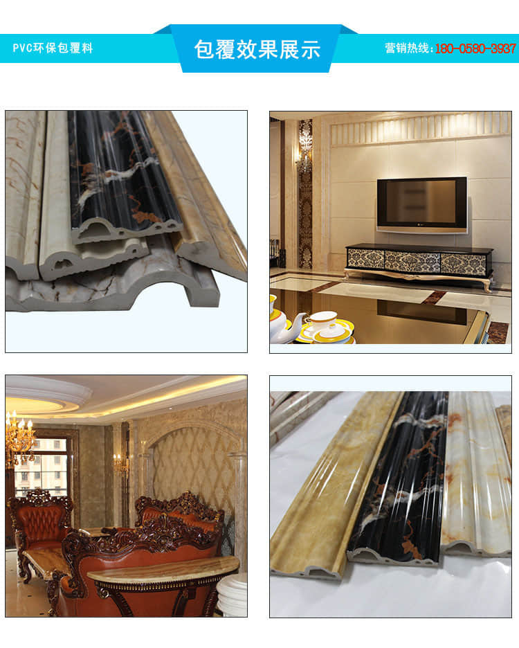 金立达新材料经技术攻关,开发出适用于石塑型材、木塑型材、发泡型材表面包覆专用料,金立达PVC包覆料优点::1、 易挤出加工。2、 表面光滑易后道烫印加工。3、 烫印加工后,牢度好不易脱落。4、 颜色可按客户要求进行调色定制。5、 月供500吨以上,多家客户使用!